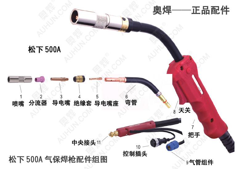 松下500A氣保焊槍(氣冷式)適用于:350-500A氣保焊機(jī)使用,暫載率60%時焊機(jī)電流500A,使用焊絲直徑:0.8-1.6MM,相關(guān)配件:保護(hù)套,彎管,導(dǎo)電咀,連桿,絕緣螺母,送絲管。